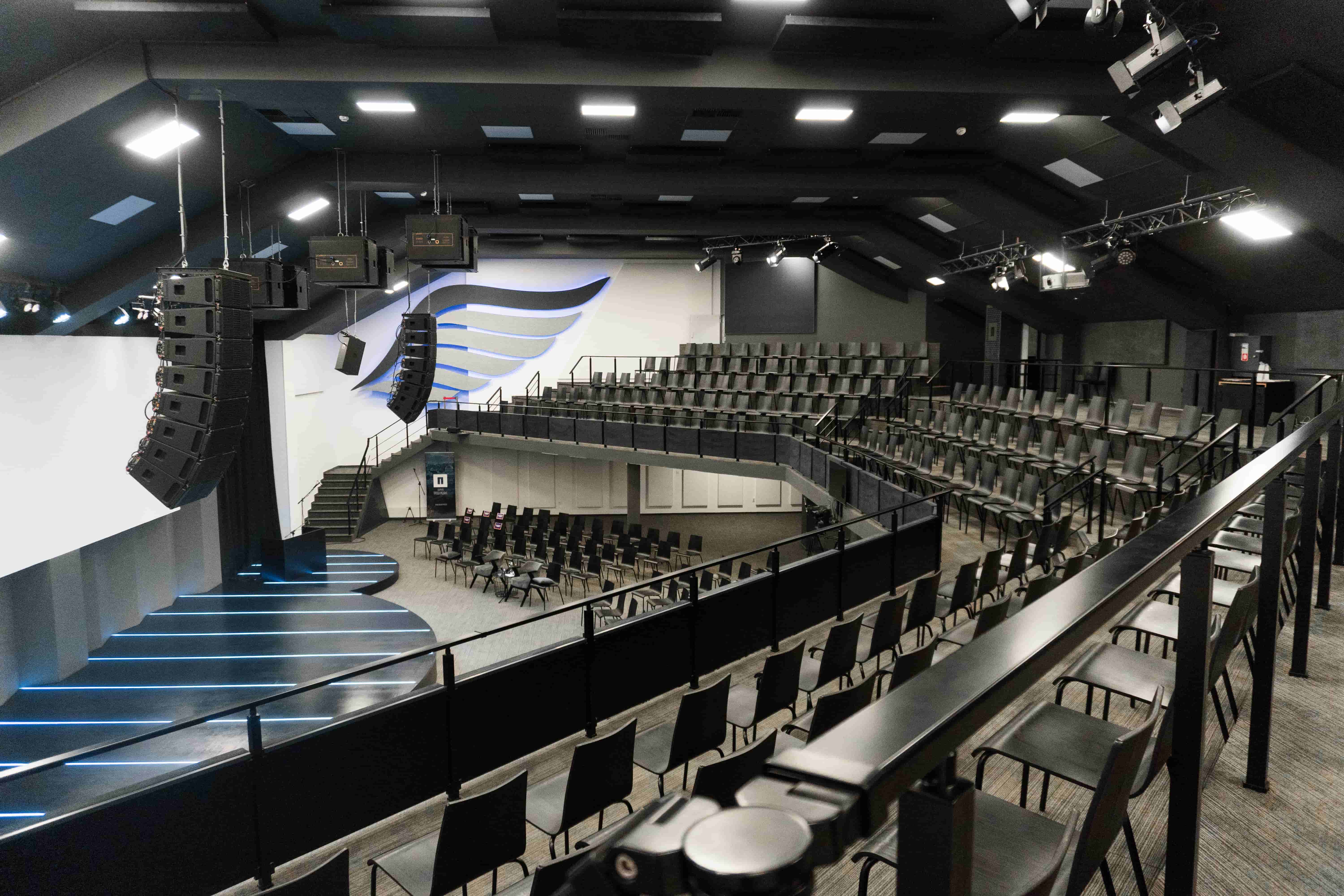 Внушителна зала, съчетаваща авангарден дизайн и върхови технологии. Гъвкавата конфигурация позволява адаптация за всеки формат - от конференции и концерти до гала вечери и сватби.