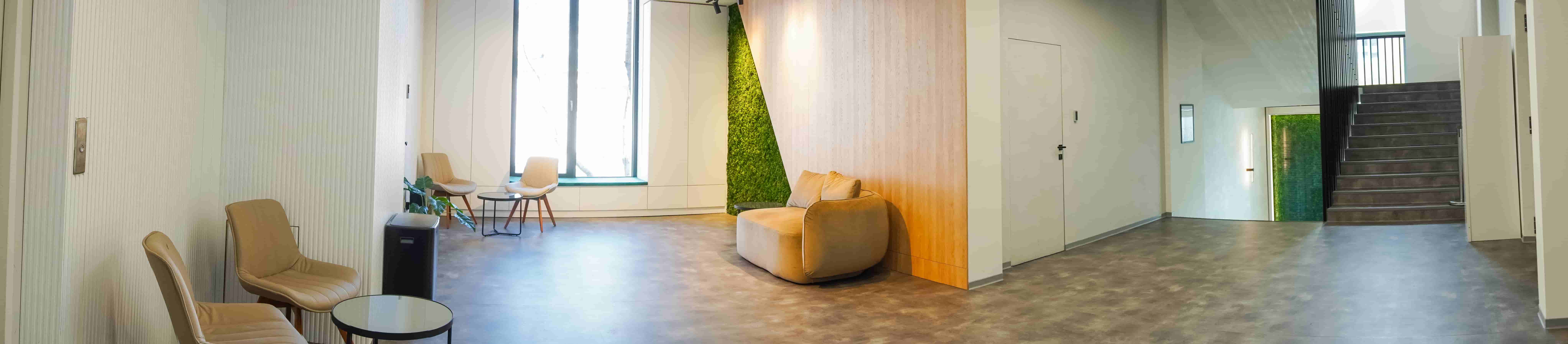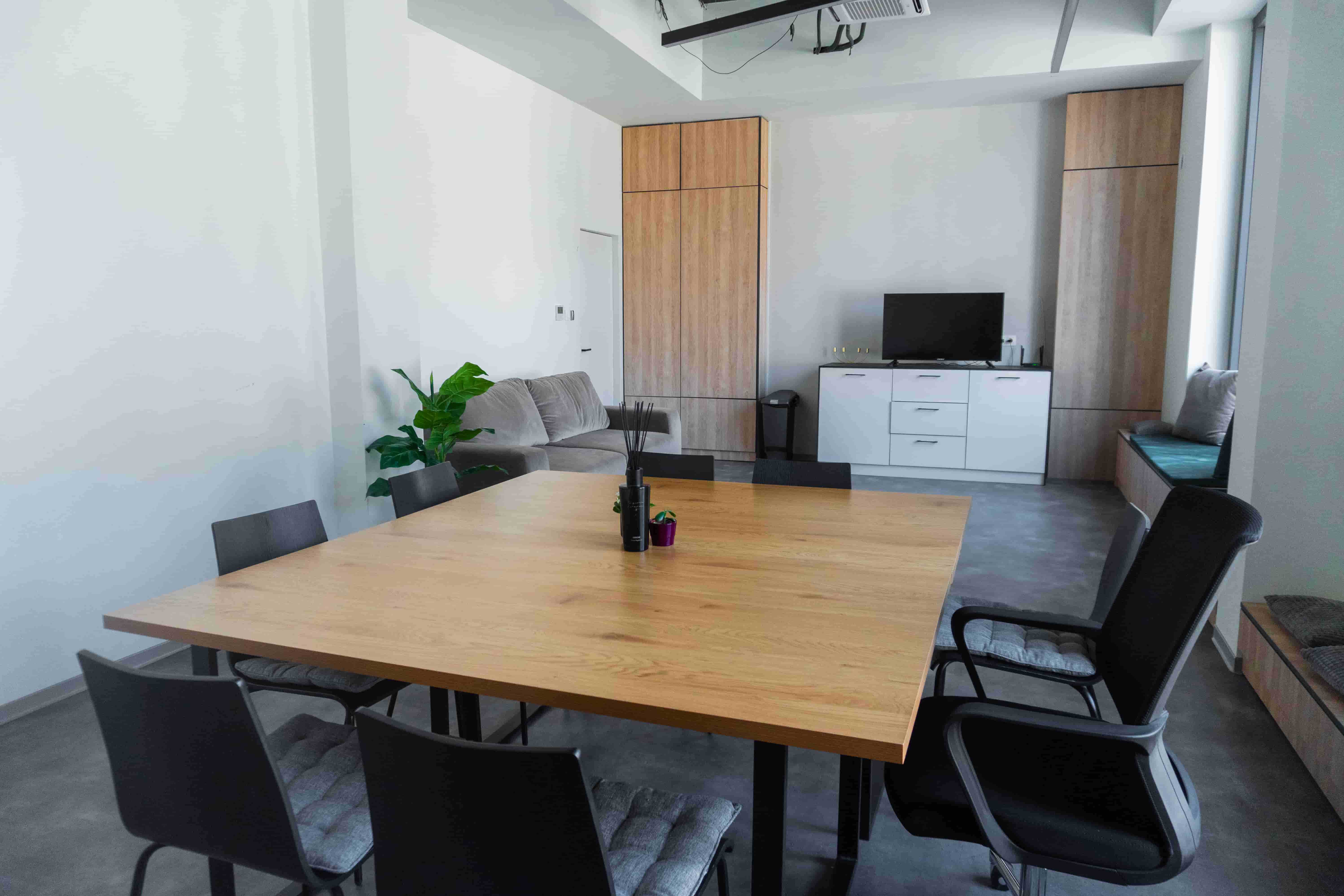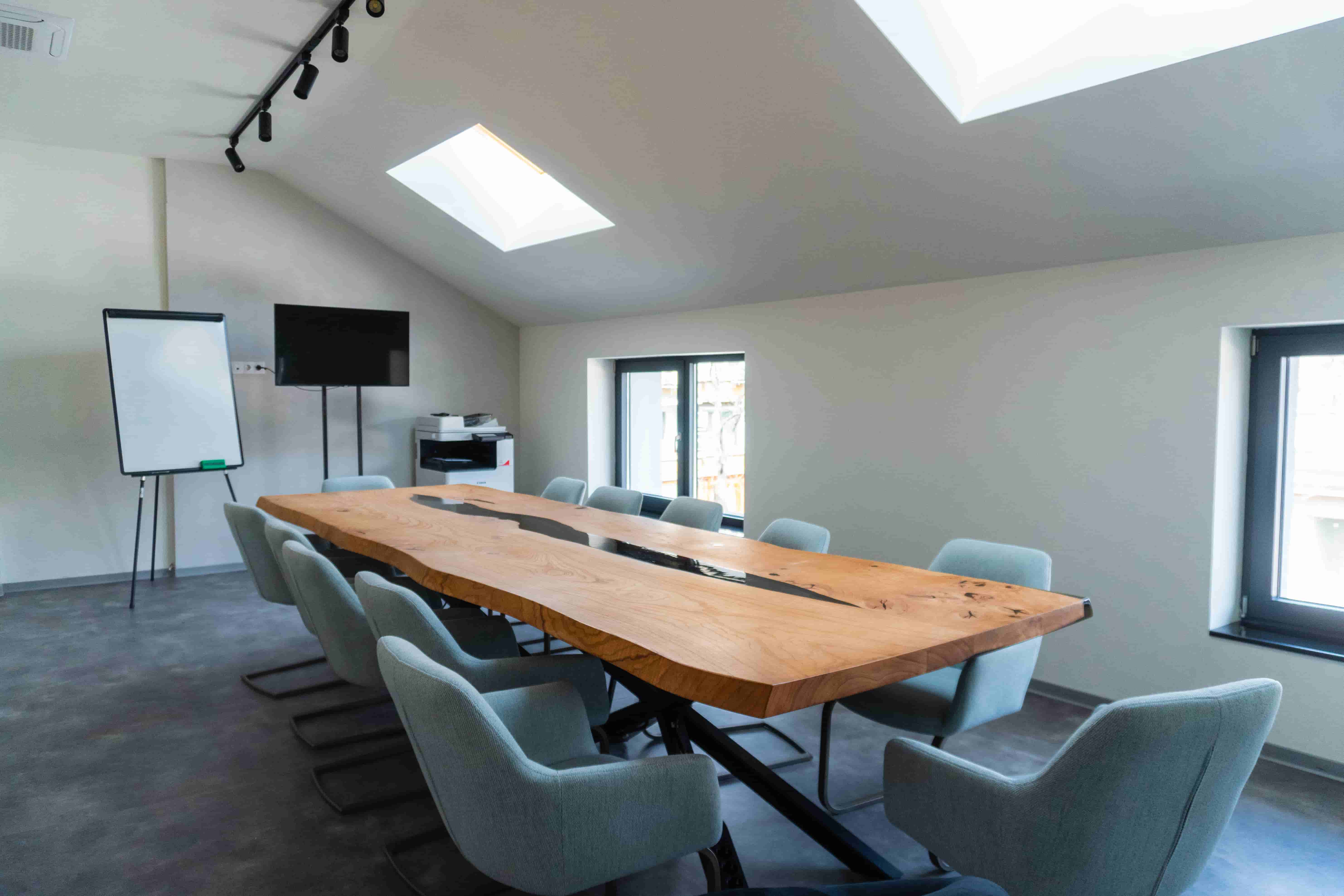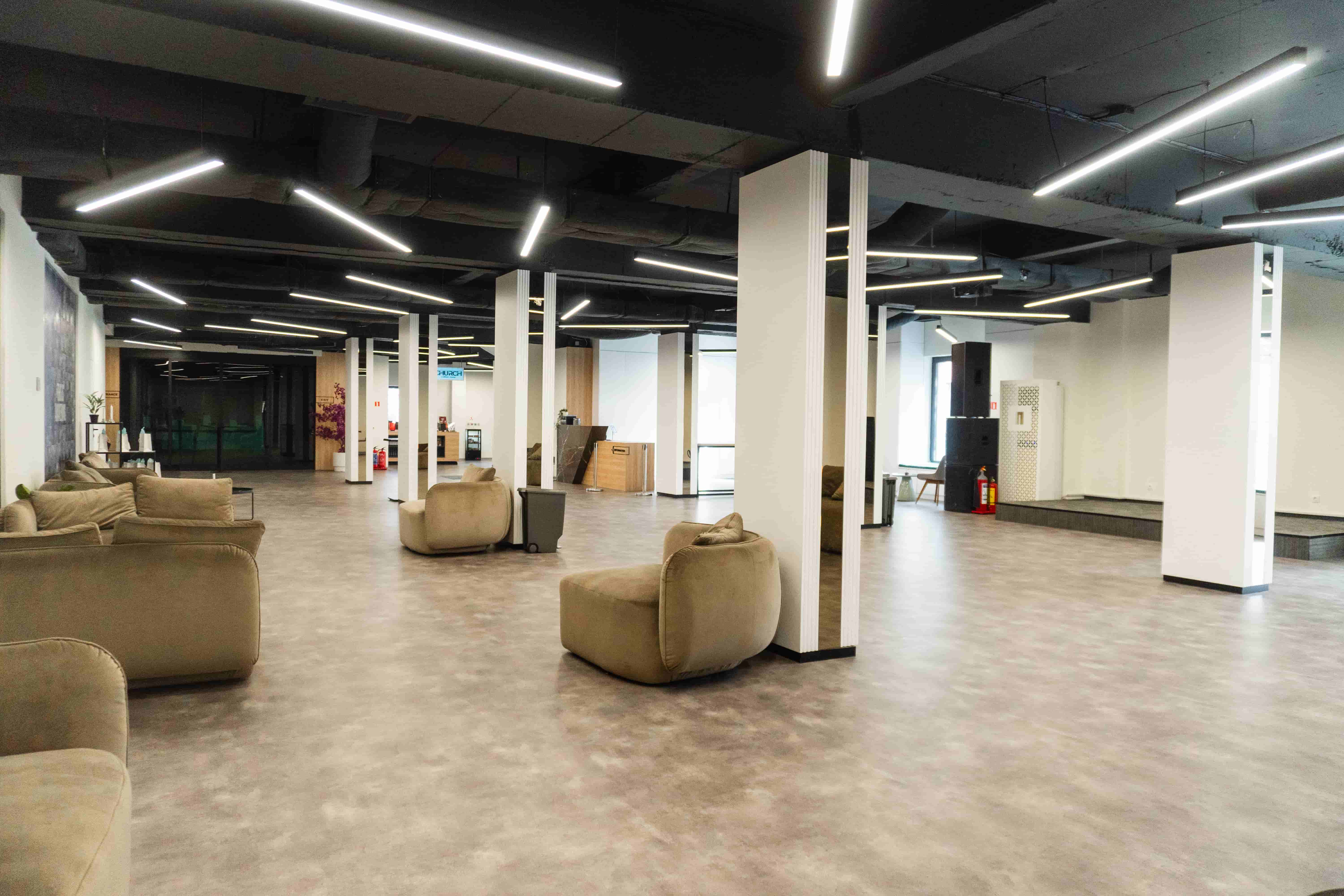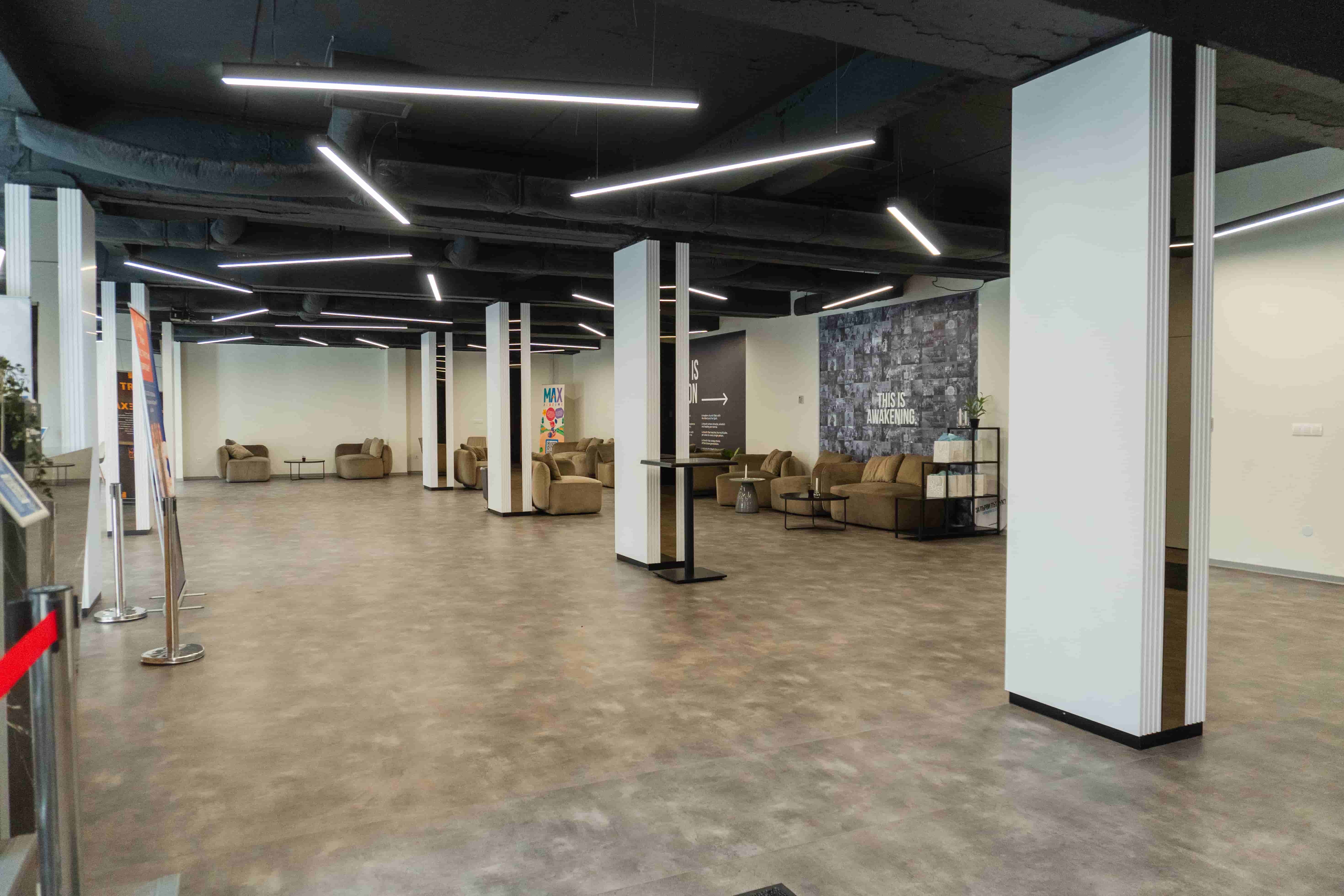 Елегантно пространство, идеално за бизнес презентации и нетуъркинг събития. Естествената дневна светлина се комбинира с интелигентно LED осветление, създавайки продуктивна и вдъхновяваща среда.